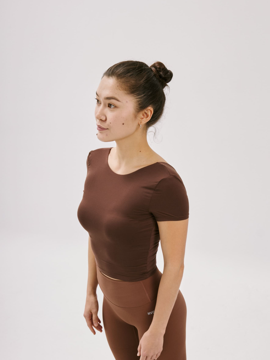 Облегающая футболка с глубоким вырезом на спине создаёт изящный силуэт и подчёркивает женственность. Идеальный выбор для активных тренировок или повседневной носки в жаркое время года.